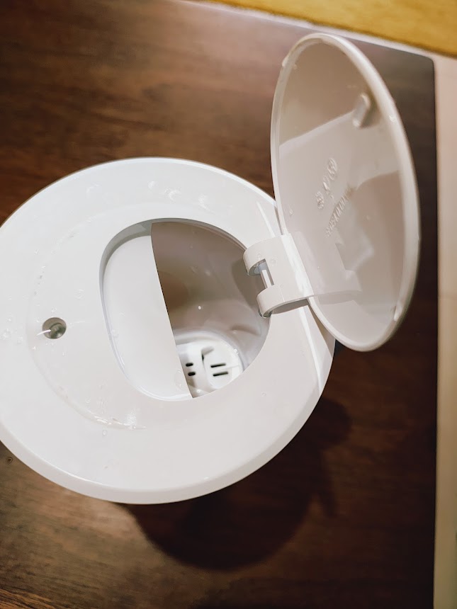 • 上部のフリップトップ式の蓋は、片手でパカッと開けて水を注げる構造。忙しい朝でもストレスが少ない。