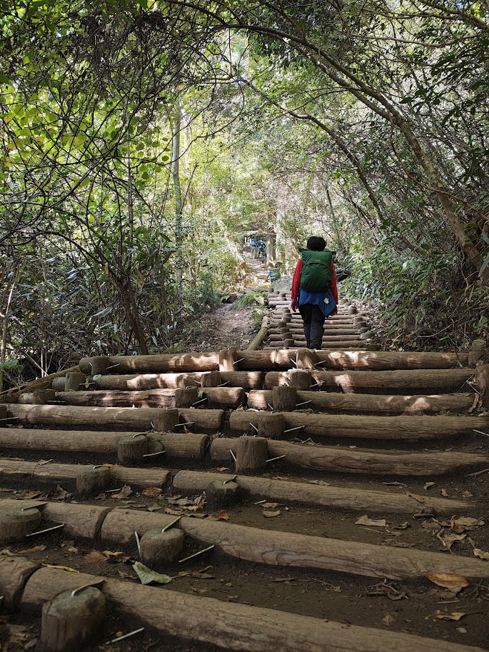 山頂まであと500mあたりから、永遠に続く木の階段ゾーンが出現します。